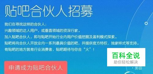 打开百度贴吧合伙人招募页面。