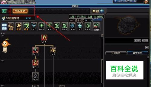 在打开的技能栏,左上角可以看到“转职变更”