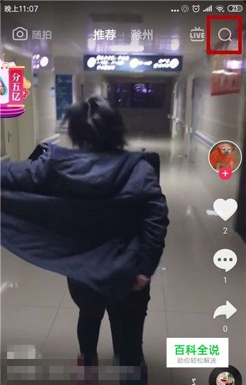 这个道具在抖音道具里小编是没找到,但通过同款道具可以使用,打开抖音后点击右上角的【搜索】。