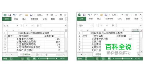 打开需要处理的工作簿,在这个工作簿中,“11月采购表”和“12月采购表”工作表包含需要合并的数据,如图1所示。“合计”工作表用于放置进行合并计算后的数据,其结构如图2所示。