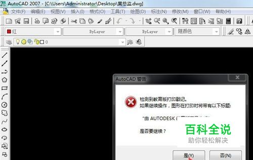 【文件】【打开】图纸,弹出AutoCAD警告,检测到教育版打印戳记,是否需要继续;