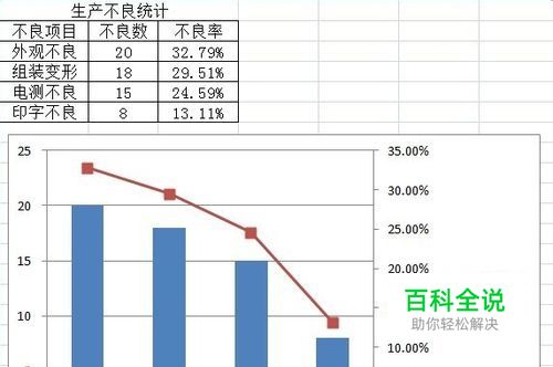 一张柏拉图就完成了,不仅一眼可以看到统计的不良数量的走势,还可以看到不良率的趋势,对我们分析问题很有参考价值: