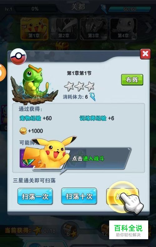 让宠物快速升级实力需要去战斗,打开副本,选择关卡,点击进入战斗,如图所示