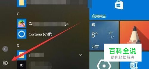 在Windows10系统桌面,点击桌面左下角的开始按钮,在弹出菜单中点击“设置”按钮