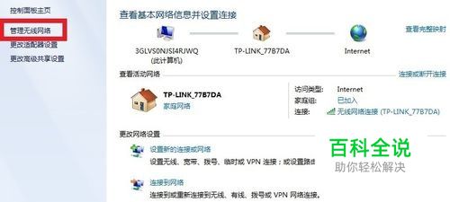 打开管理无线网络 点击“管理无线网络”,找到无线网络列表。