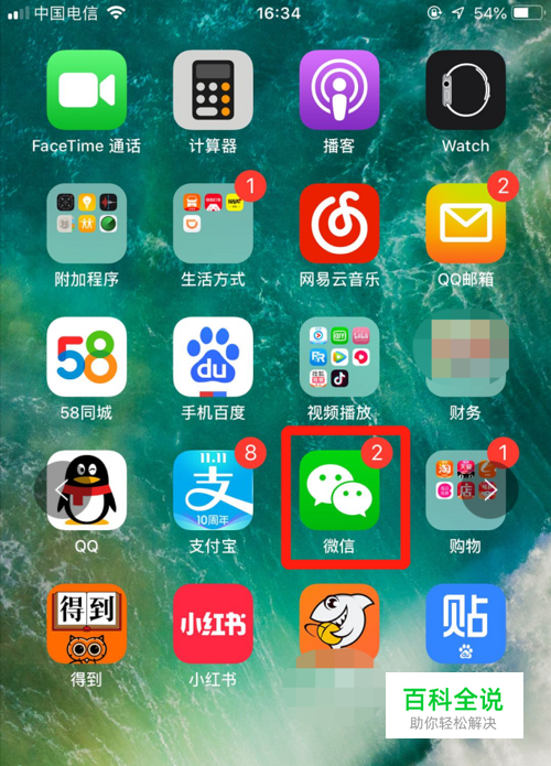在手机桌面上找出【微信】APP,如图所示,点击该APP,进入聊天主页!