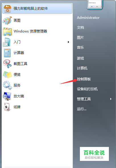 打开电脑左下角开始菜单, 点击右方菜单栏中的【控制面板】