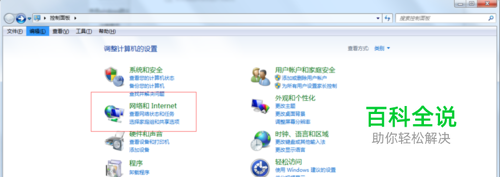 进入控制面板界面,点击下方列表中的【网络和Internet】选项