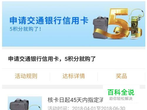 在2018年4月1日到6月30日期间,新申请交通银行信用卡的用户,可以参加交行的精彩活动,只需要用5积分就可以兑换精美的礼品,包括商务休闲双肩包和运动耳机,非常划算。现在,根据我的实际领取,告诉大家怎样操作。