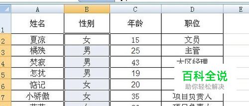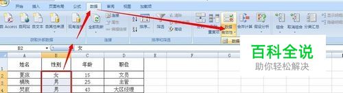 在回到表格中,在性别一栏对应单元格中会自动出现下拉菜单,有男,女可选择。 另外,如不小心输错的话,会跳出警告窗口哦~