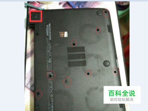 先把后背的12课螺丝全部拧下来,看我圈的地方。特别是靠近显示屏的脚垫位置里面隐藏着两颗螺丝呢,一定要卸下来。