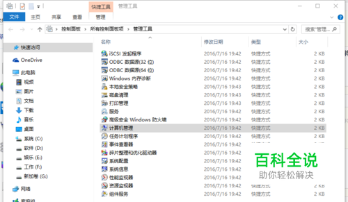 进入计算机管理界面后点选 “磁盘管理”,此时右侧窗口中将显示你的硬盘分区列表。