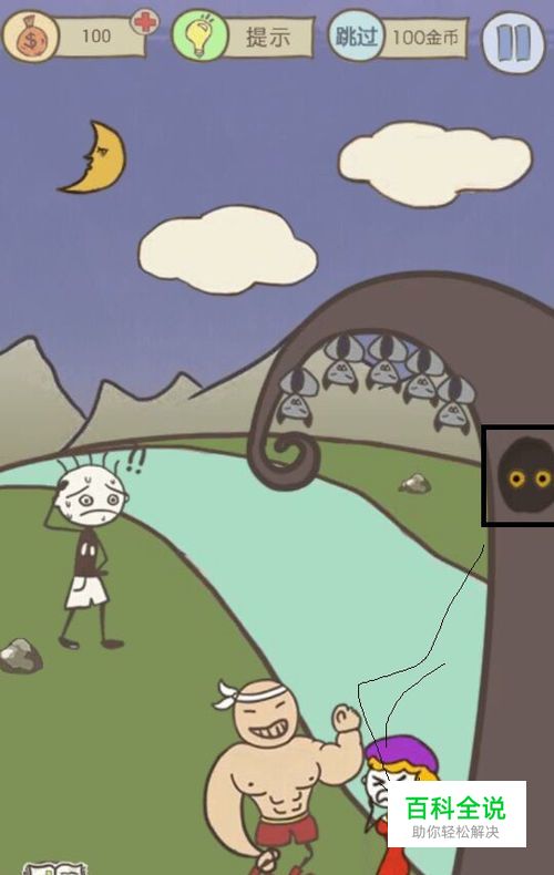 第1关:点击树洞里面的眼睛,将其移动到女神的身上即可!