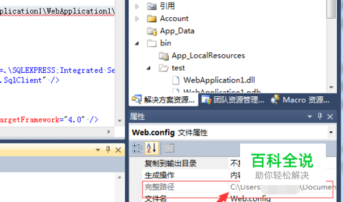 或者通过的文件的属性来进行查看文件的路径,进行点击解决方案资源管理的窗口的中“属性”的按钮。