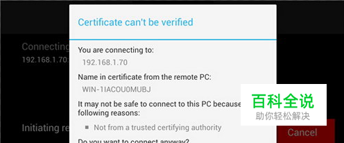 点击它用你的手指戳它发出远程访问,第一次访问时会有提示你连接。选择连接connect后提示输入目标电脑的远程帐号密码。此时,手机在内网,可以愉快的用手机操作电脑管理,滑动手指鼠标就跟着你走。手机返回键退出后,可以看到手机远程软件列表缩略图状态