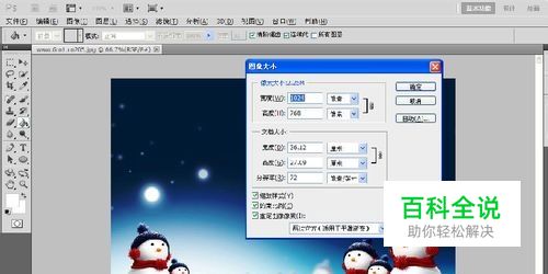 然后根据自己的需要输入宽度和高度。默认的调节大小是拘束比例的,是在对话框下面有这个选项,如果想任意调节大小的话就去掉“约束比例”那个勾。