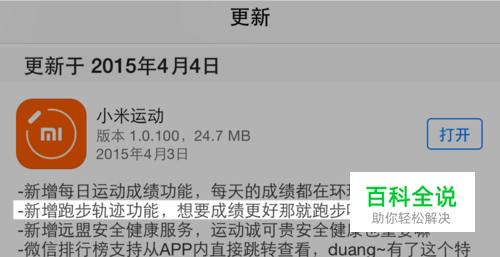首先当然是需要将你手机上的“小米运动”这个应用升级更新到当前最新的版本。在更新说明中,可以看到有 “跑步轨迹功能”,如图所示