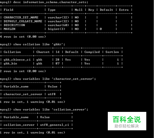 如何利用MySQL命令查看字符集和校对规则