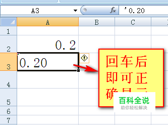回到该单元格,继续输入小数0.20后回车,发现此时可以正确输入小数0.20.
