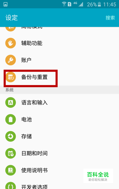 进入【备份与重置页面】,会看到【自动重启】选项。