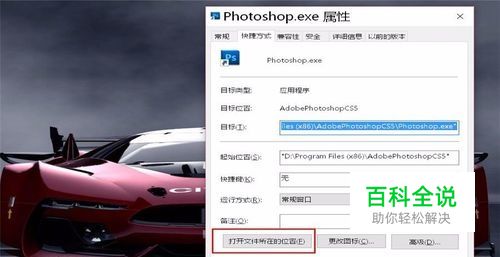 在Photoshop快捷方式上右键单击,选择属性,打开文件所在位置。