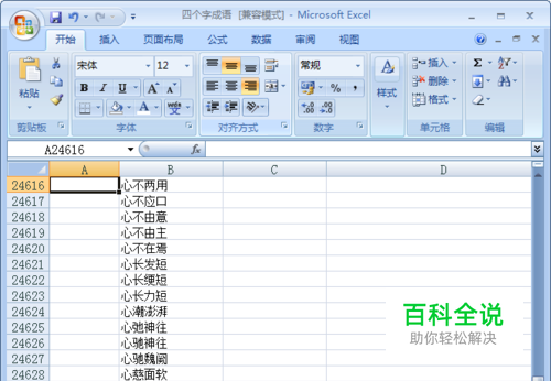 首先在自己电脑上,打开一份表格,比如:【四个字成语】。