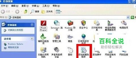 单击“开始”菜单,单击“控制面板”项,在打开的控制面板窗口双击“添加或删除程序”