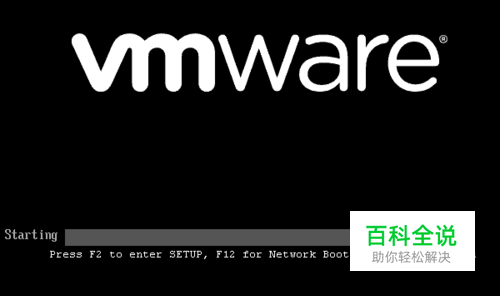 首先,点击虚拟机系统的开机键,实现虚拟机系统的启动,这时虚拟机画面会闪现出如下图所示画面,时间较短,可能还来不及看清楚。