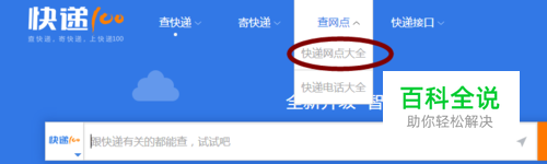 然后进入到快递100网站,点击上方的“查网点”,在下拉中选择网点大全,如图
