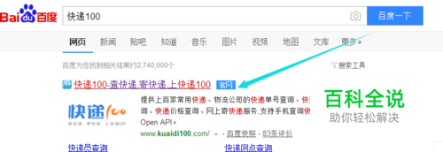 首先我们打开浏览器,然后在搜索引擎中输入快递100,然后点击如图所示的结果。
