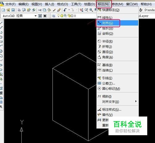 点击’标注‘,选择’对齐‘。
