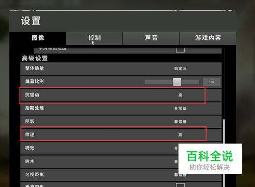 画质设置 这里我们除了 抗锯齿和纹理为高 其它均为最低
