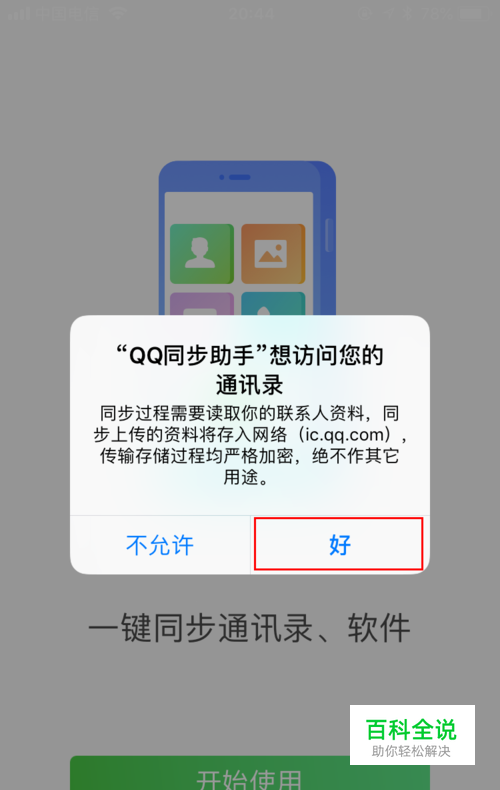 安装完成后,进入QQ同步助手,登陆与之前备份手机时相同的账号,设置访问通讯录权限