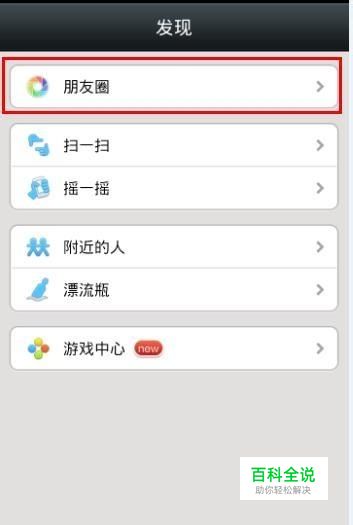 打开微信,然后选择底部的“发现”,点击上方的“朋友圈”;