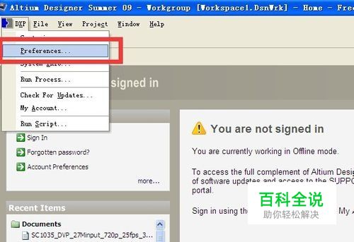打开Protel DXP 2009后,点击红色框框(Preferences)。