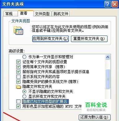 在查看中的高级设置里面找到隐藏已知文件类型扩展名,将前面的勾选去掉;