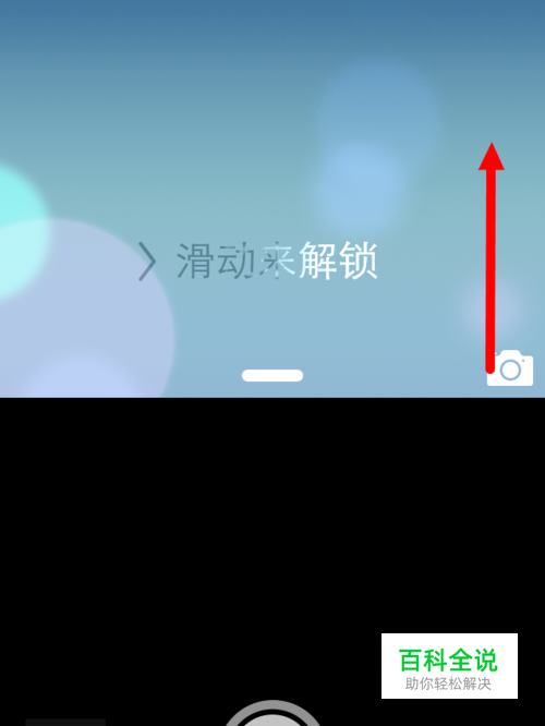 滑动后看到这样的界面再继续往上滑动。当然,如果你发现是快捷工具栏的界面那就不对了。原因是你第一步没有从相机图标那里开始滑动。