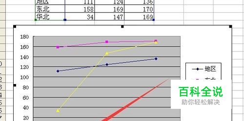 点击折线图图表区空白处 让图标区处于选中状态 此时图表区边界会出现拖动点 鼠标按下箭头指向的拖动点 然后向下拖动拖动点