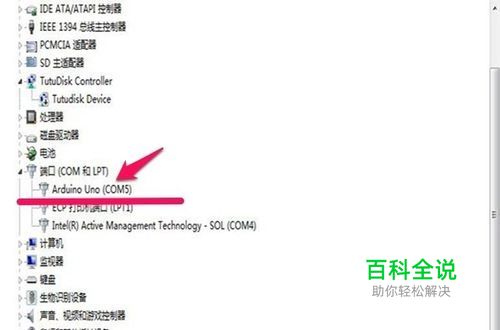 将Arduino连接到笔记本上并成功安装驱动后可以在设备管理器中查看Arduino占用的串口号,如下图为COM5。