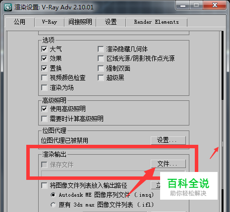 在对话框中的公用面版上下拉找到,渲染输出,还没设置路径这里是灰色的,要选择文件,设置一下路径和文件格式