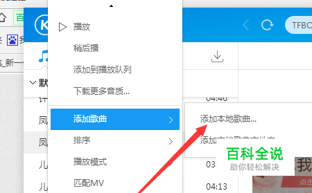 在播放列表的空白地方,右键---添加歌曲--添加本地歌曲