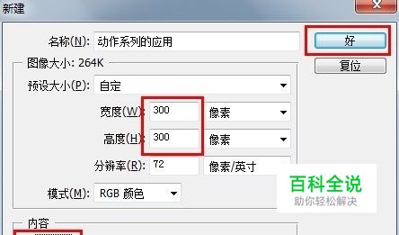 打开PS,新建一空白文件,大小设置为“300*300”,背景色为“白色”。