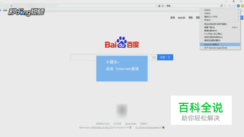 打开ie浏览器,点击右上方的设置图标,点击“Internet选项”。