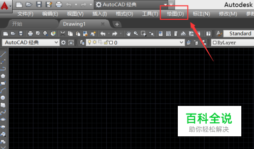 在该界面内找到绘图菜单,如图所示;