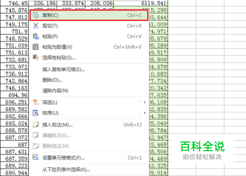 第二步我们首先还是选择上要复制的数据,鼠标右键点击复制,如下图所示: