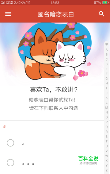 【匿名暗恋表白】的窗口,需要让探探读取联系人的权限,就会显示你的所有联系人。