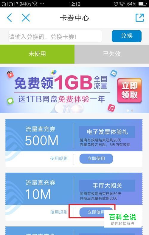 第三步:当小编选择了使用10MB的卡券后,会弹出来一个让我确认是否使用的窗口,毫不犹豫,直接选择确认使用!