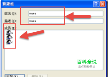 然后点击组,在右框里点击新建组,建立一个叫“wawa”的组 所示。然后点添加,把a用户,b 用户,c 用户都添加到 wawa 组里,