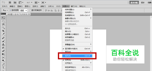 首先,新建一个正方形的背景图层,并点开上方菜单栏“ 视图”中的“ 标尺”工具,标注出背景的 中心点,如图所示。