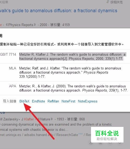 系统也提供BibTeX;EndNote;RefMan;NoteFirst;NoteExpress等格式,点击系统会自动跳转